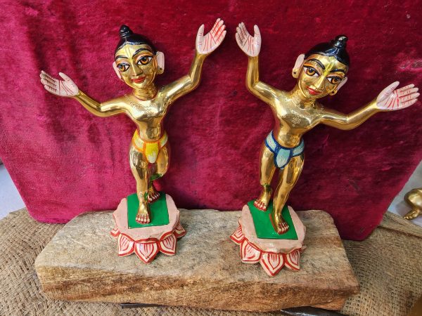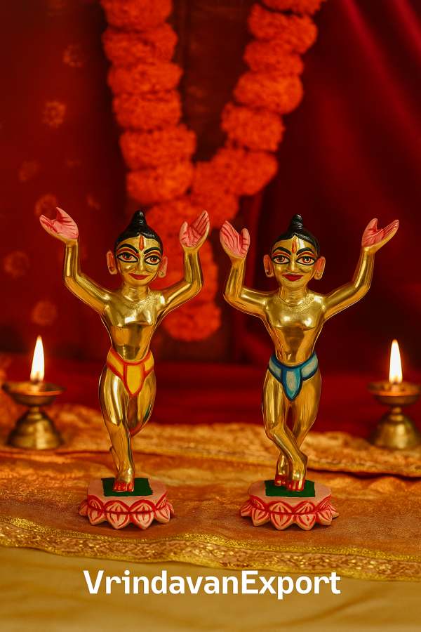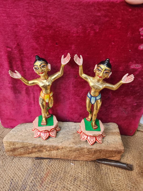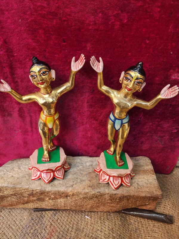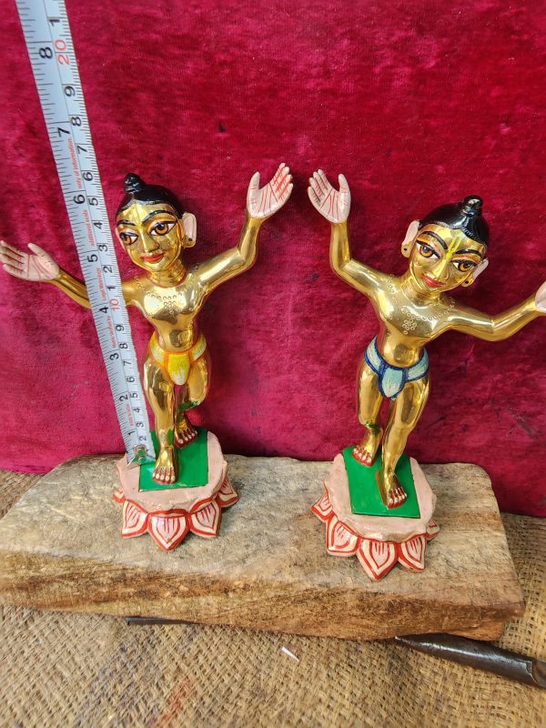 This 7-inch Gaura Nitai Idol Set is a divine representation of Sri Chaitanya Mahaprabhu and Nityananda Prabhu