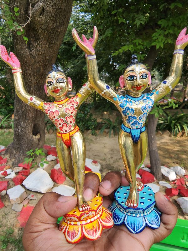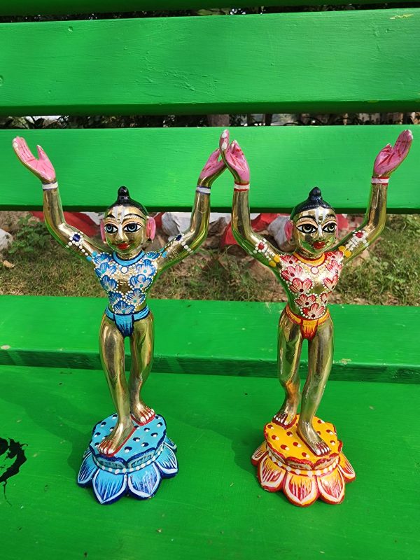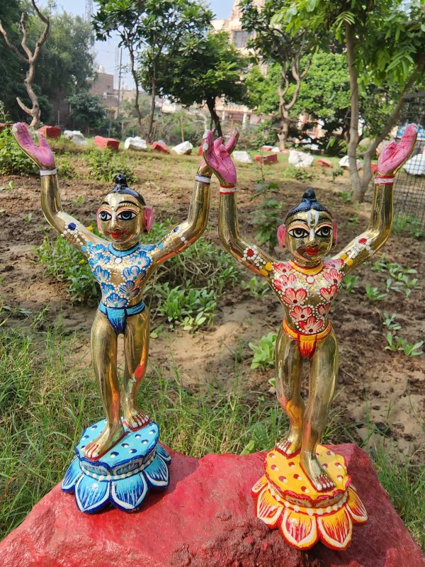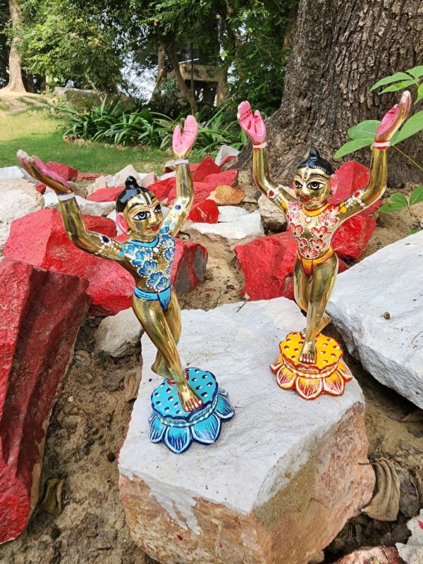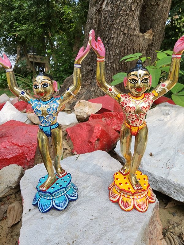 Beautiful 8 Inch Gaur Nitai Idol | Hand-Painted Brass Look Deities | Goura Nitai Murti | Gaura Nityananda Statue from Vrindavan