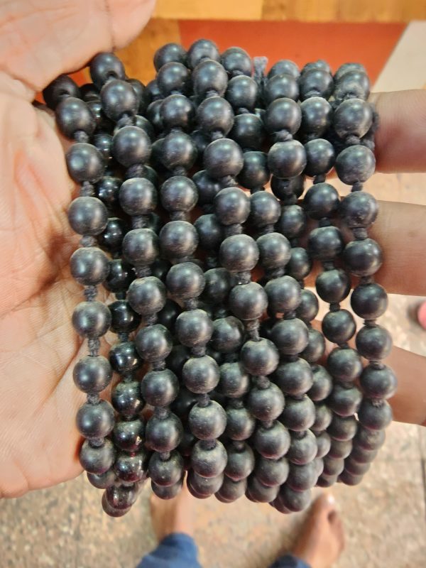 This authentic Black Shaligram Mala is made of original Shaligram beads collected from sacred rivers and crafted for worship, meditation, and chanting.