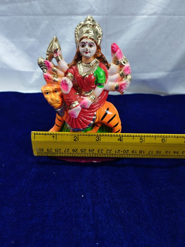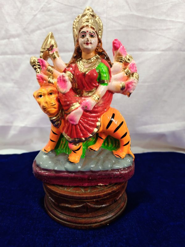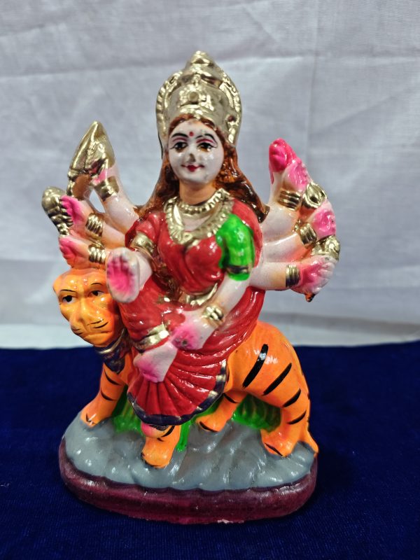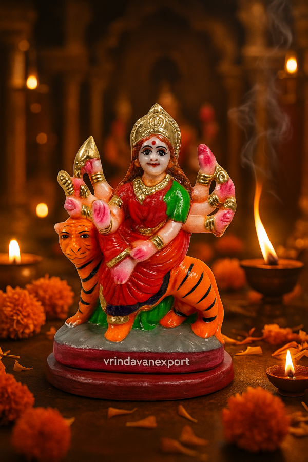 Durga Maa Idol on Tiger | Handmade Maa Durga Murti for Navratri & Temple | Clay & Marble Finish Statue | Vrindavan Export